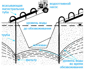 Система является достаточно сложной конструкцией, которая состоит из большого количества иглофильтров, насоса и трубопроводов.